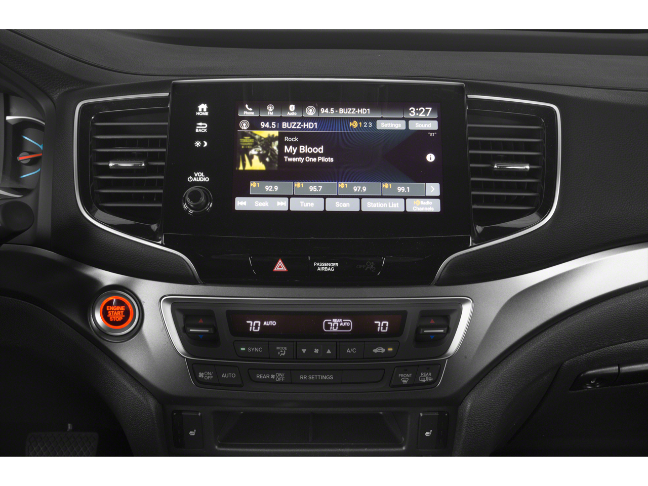 - Radio: 215-Watt Audio System w/7 Speakers -inc: subwoofer, 8" display audio w/high-resolution electrostatic touch-screen and customizable feature settings, Bluetooth® HandsFreeLink, Bluetooth® streaming audio, MP3/auxiliary input jack in center console, Radio Data System (RDS), Speed-Sensitive Volume Compensation (SVC), (3) 2.5-amp USB charging ports, 12-volt power outlets in front console, center console and cargo area, HondaLink, Apple CarPlay integration, Android Auto integration, CabinControl remote compatibility, SMS text message function, SiriusXM radio, HD Radio, mobile hotspot capability (requires AT&T data plan) and 2.5-amp USB smartphone/audio interface port in front console SiriusXM services require a subscription after any trial period.