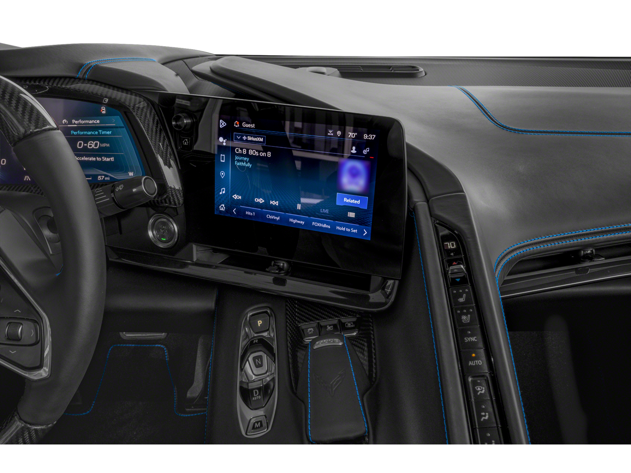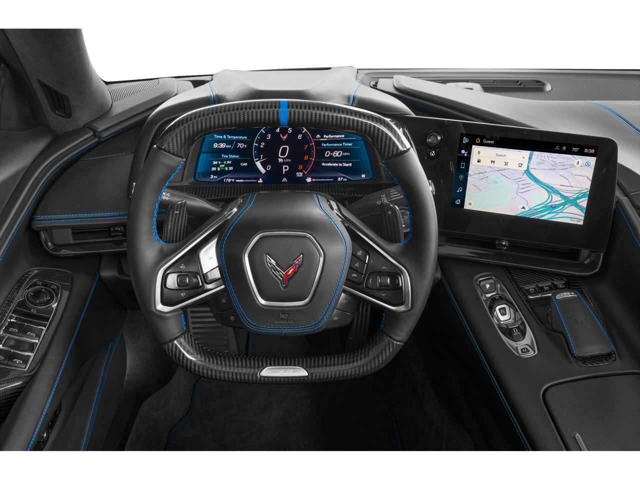 CARBON AERO, VISIBLE CARBON FIBER includes high-wing, dive planes and (CFV) visible carbon ground effects, Z07 PERFORMANCE PACKAGE includes (J57) 4-wheel antilock, 4-wheel disc, carbon ceramic brakes, (J6D) Dark Gray Metallic-painted calipers, (FE7) Z07 suspension with Magnetic Selective Ride Control and (XFS) 275/30ZR20 front and 345/25ZR21 rear Michelin Pilot Sport Cup 2 R ultra performance tires, WHEELS, 20 X 10 (50.8 CM X 25.4 CM) FRONT AND 21 X 13 (53.3 CM X 33 CM) REAR SPIDER DESIGN, SATIN GRAPHITE FORGED ALUMINUM, AUDIO SYSTEM, CHEVROLET INFOTAINMENT 3 PREMIUM SYSTEM with Google built-in compatibility (select service plan required, terms and limitations apply) including navigation capability, 8 diagonal HD color touchscreen, includes multi-touch display, AM/FM stereo, Bluetooth® streaming audio for music and most phones; featuring Wireless Apple CarPlay® and Wireless Android Auto® capability for compatible phones, advanced voice recognition, in-vehicle apps, personalized profiles for infotainment and vehicle settings (STD), ENGINE, 5.5L V8 DI, HIGH-OUTPUT Variable Valve Timing (VVT), (670 hp [499.6 kW] @ 8400 rpm, 460 lb-ft of torque [623.8 N-m] @ 6300 rpm) (STD), TRANSMISSION, 8-SPEED DUAL CLUTCH, INCLUDES MANUAL AND AUTO MODES (STD).